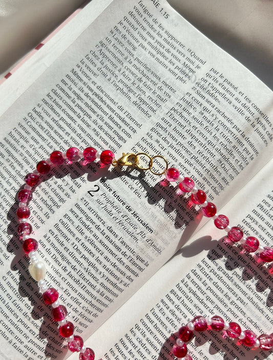Chapelet de rétroviseur en cristal rose