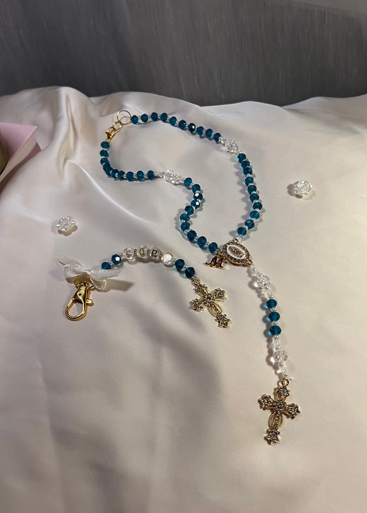 Chapelet de rétroviseur en cristal bleu