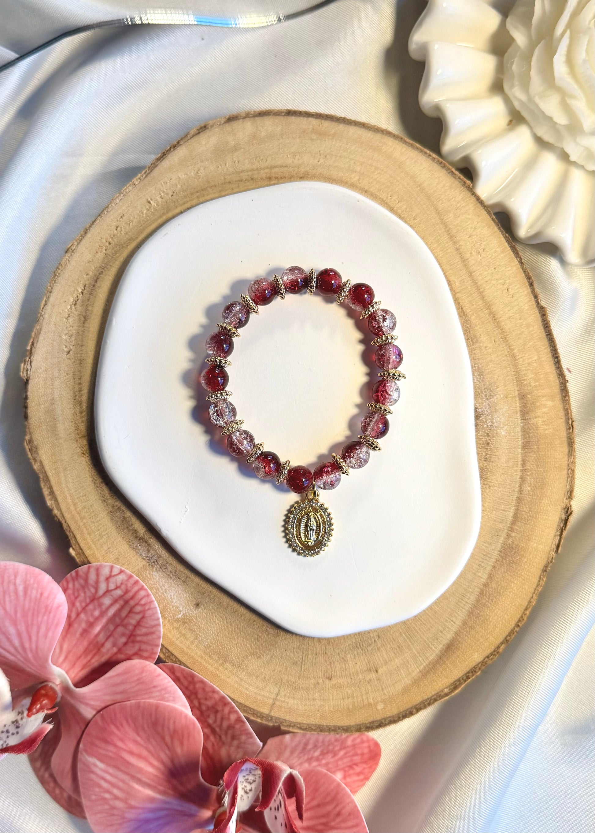 Bracelet avec médaillon de la vierge marie bordeaux