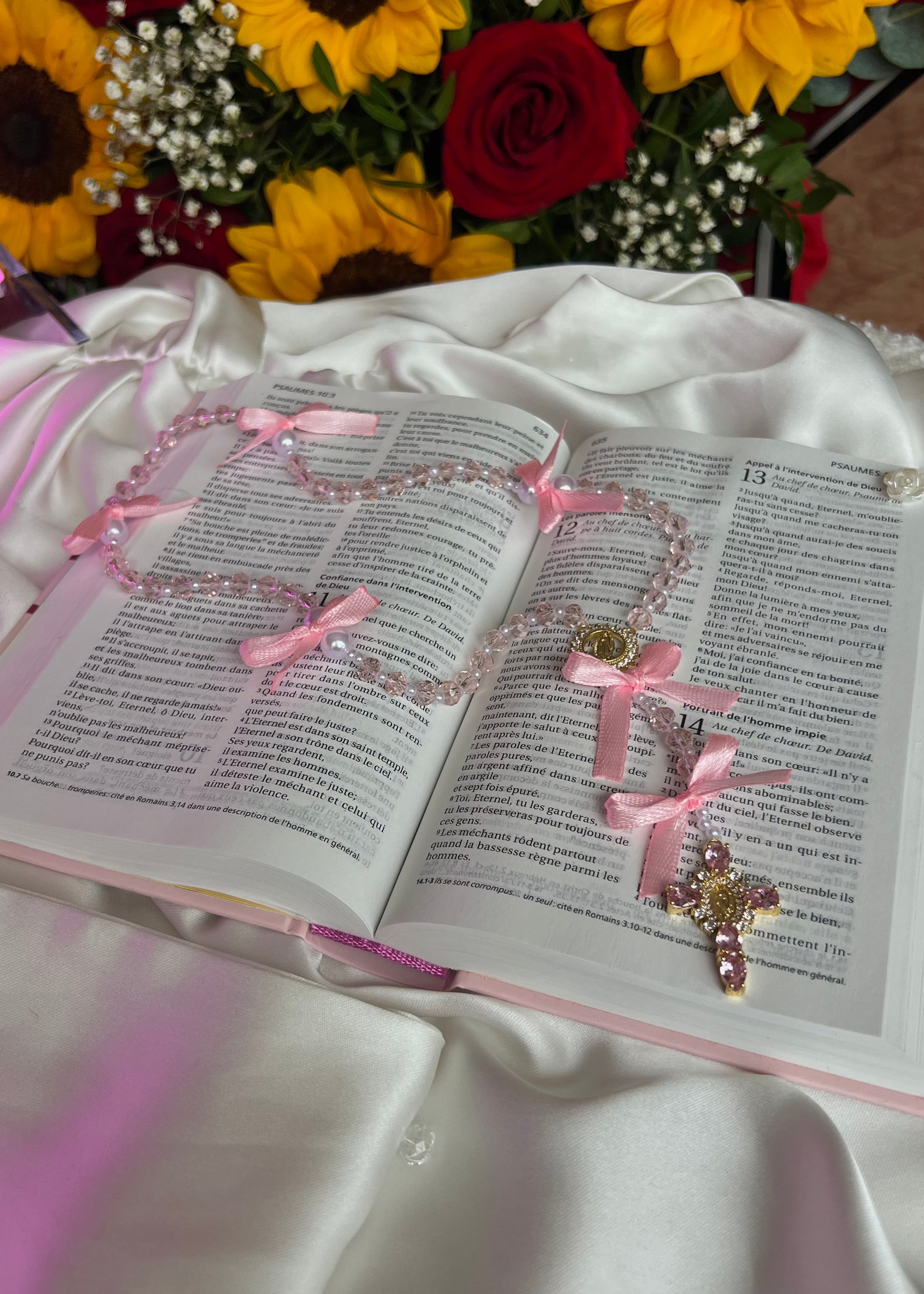 Nous avons confectionné les chapelets avec le plus grand soin, de sorte à ce qu'ils résistent aux accrochages et autres. Les nœuds sont réalisés avec des techniques bien précises pour assurer une bonne solidité.